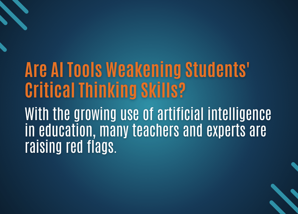 With the growing use of artificial intelligence in education, many teachers and experts are raising red flags. AI tools like tutoring apps and writing assistants are more available than ever, helping students study and complete assignments faster. But some educators are asking an important question: Could relying too much on these tools weaken the critical thinking skills that students need not just in school, but throughout life?